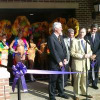The Media Center provides live satellite uplink for the grand opening of the Mardi Gras Casino & Resort.